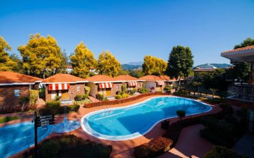 Nestled within 13 acres of lush landscaped grounds adorned with diverse flora and over 100 tree varieties, Country Inn Nature Resort in Bhimtal provides a serene escape amidst breathtaking mountain vistas. Boasting tastefully designed cottages and suites, the resort offers extensive amenities including landscaped gardens, an outdoor pool, kids' activity room, and sports facilities like tennis and badminton courts. Guests can indulge in delectable cuisine at Flames, the resort's multi-cuisine restaurant, ensuring a delightful stay immersed in nature's embrace.